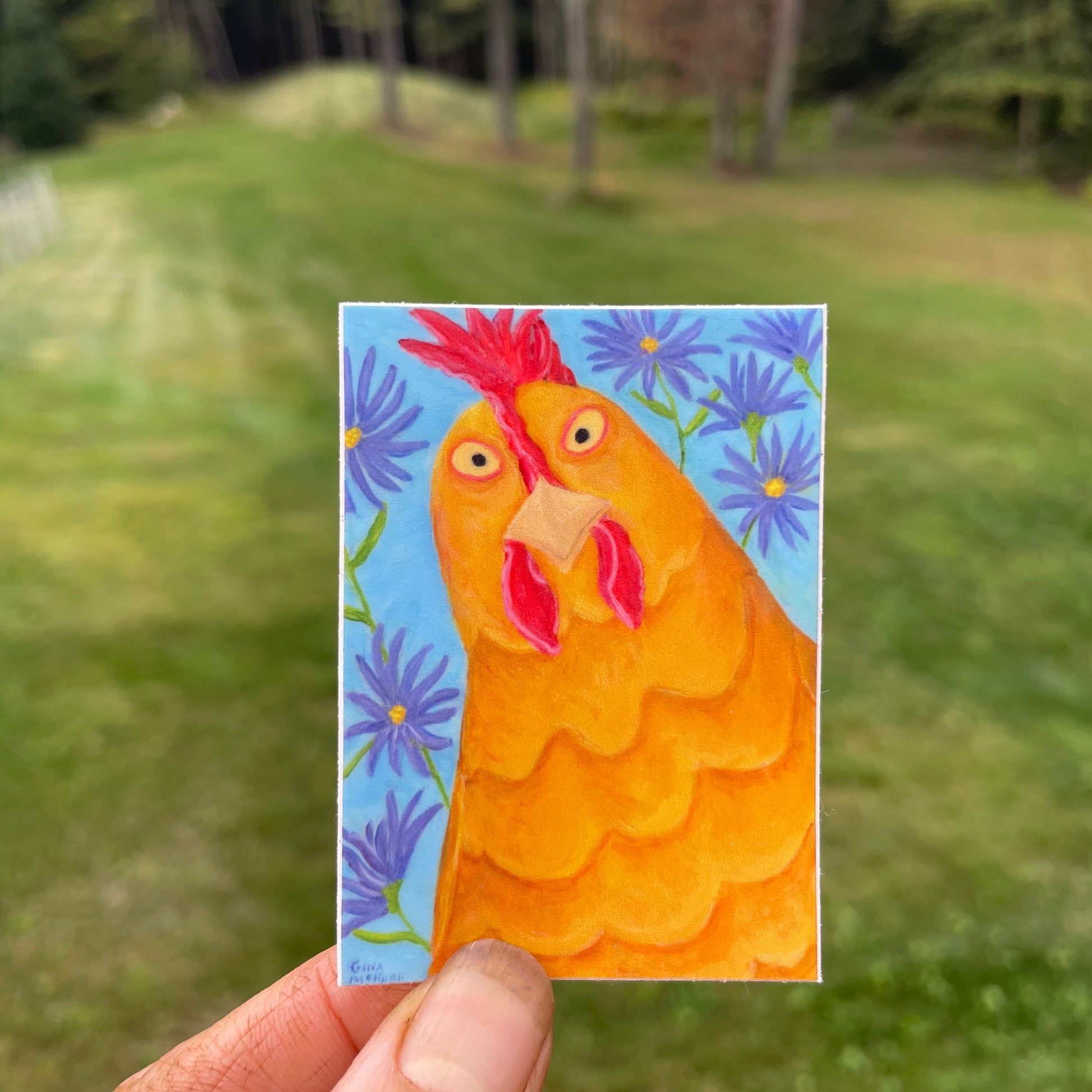 - Penelope Chicken decorative sticker features original hand-painted art…in sticker form!